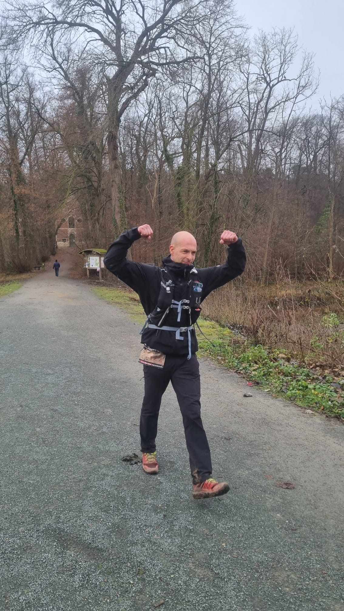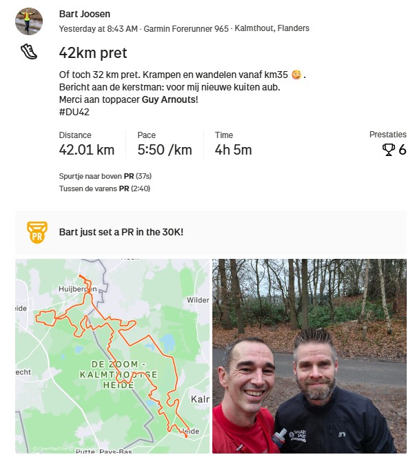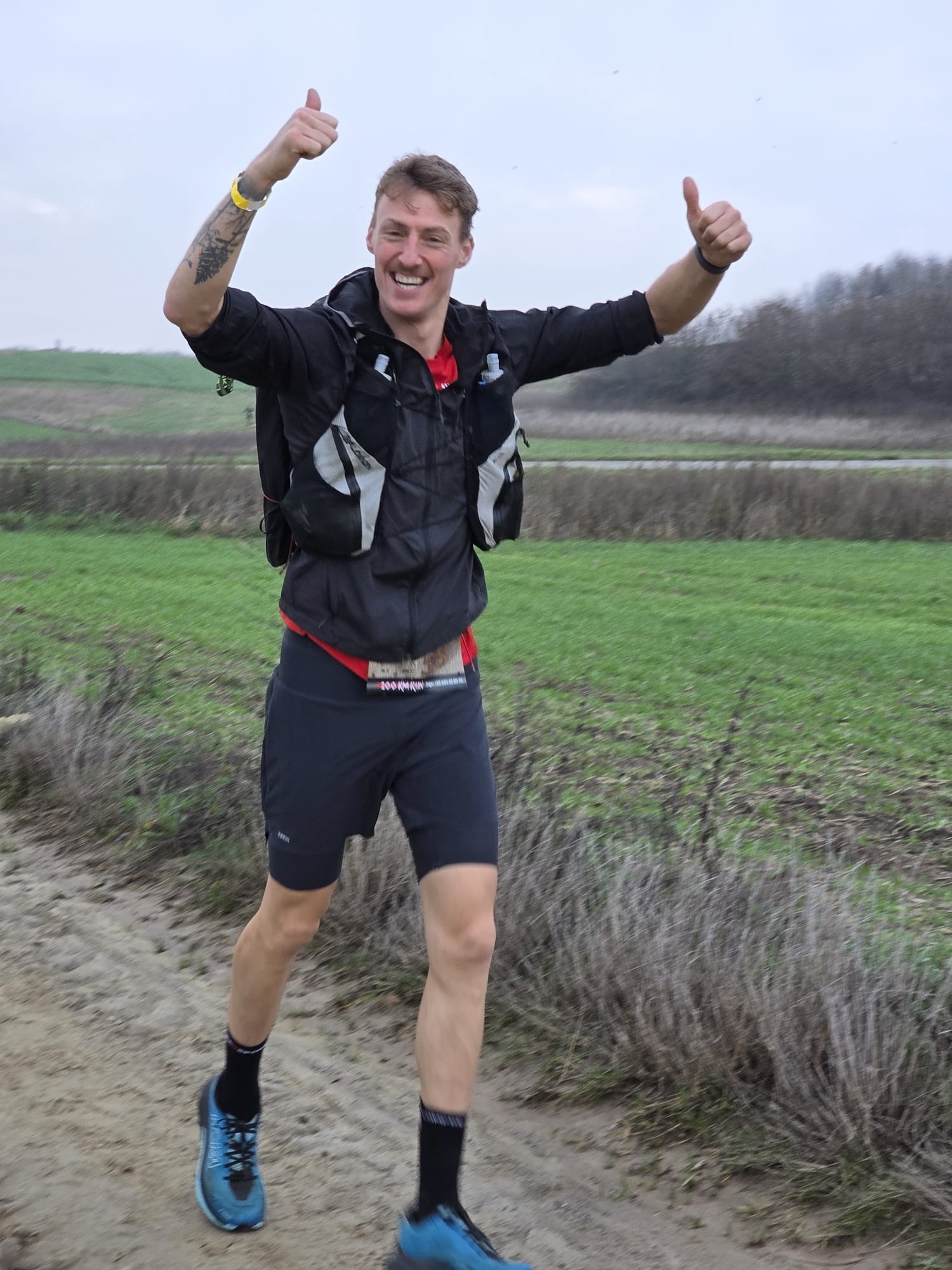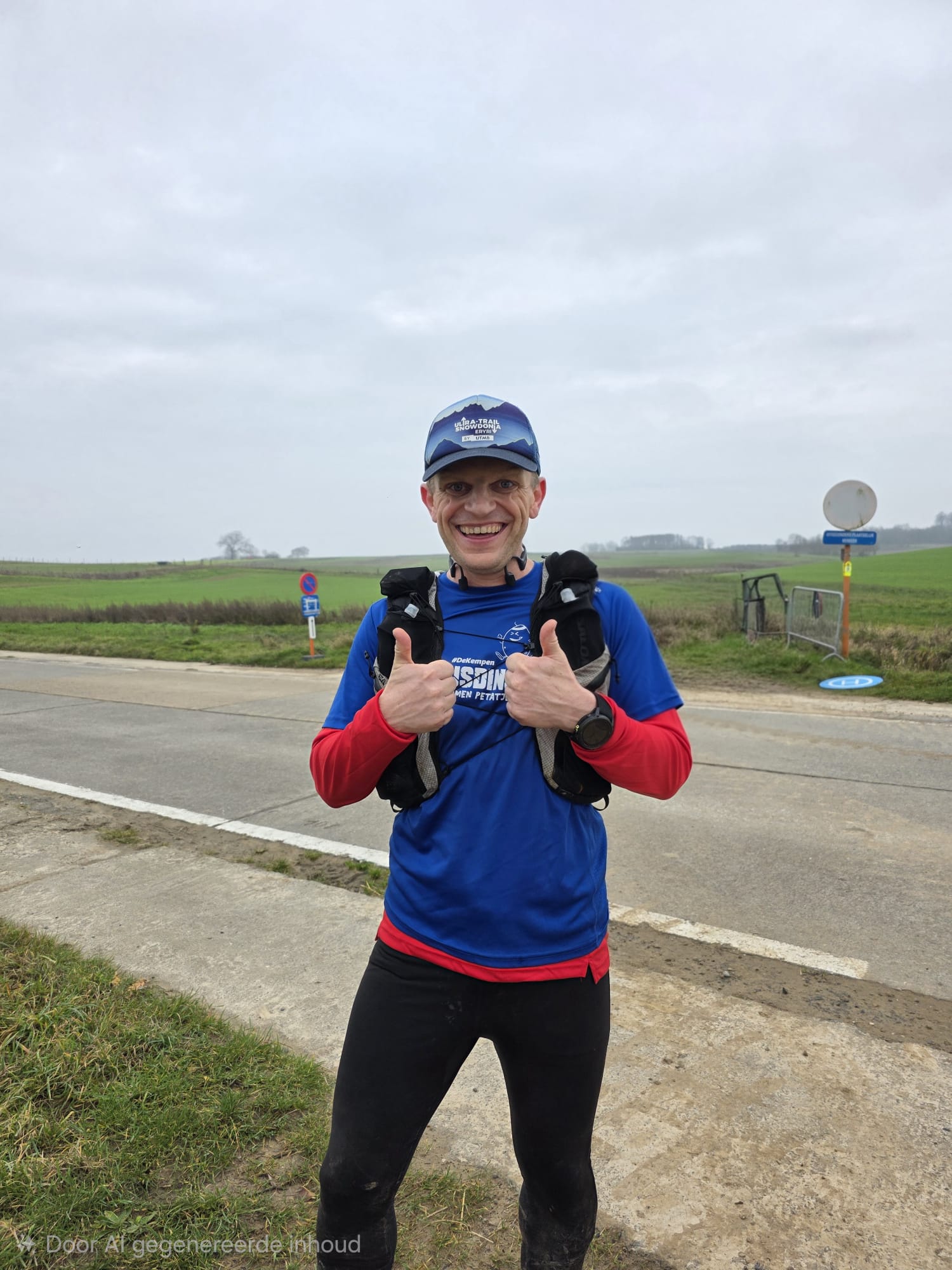 De rest van de groep beet zich vast, kilometer na kilometer, en iedereen haalde al lachend het halfwegpunt. Daar begon het echte werk. In het midden van de race werd het stil in de hoofden. Vermoeidheid kroop langzaam binnen, slaapgebrek begon te wegen. Bij Bert sloeg alles tegelijk toe. Nieuwe schoenen, verloren teennagels, voedingsproblemen en een tempo dat niet liep zoals gehoopt. Alles zat tegen. Maar wie Bert kent, weet: ergens zit altijd nog een vat karakter verstopt. Effe vloeken, tanden op elkaar, suck it up en weer vooruit. De Bello Gallico wint niet van Bert, dat weten we ondertussen.