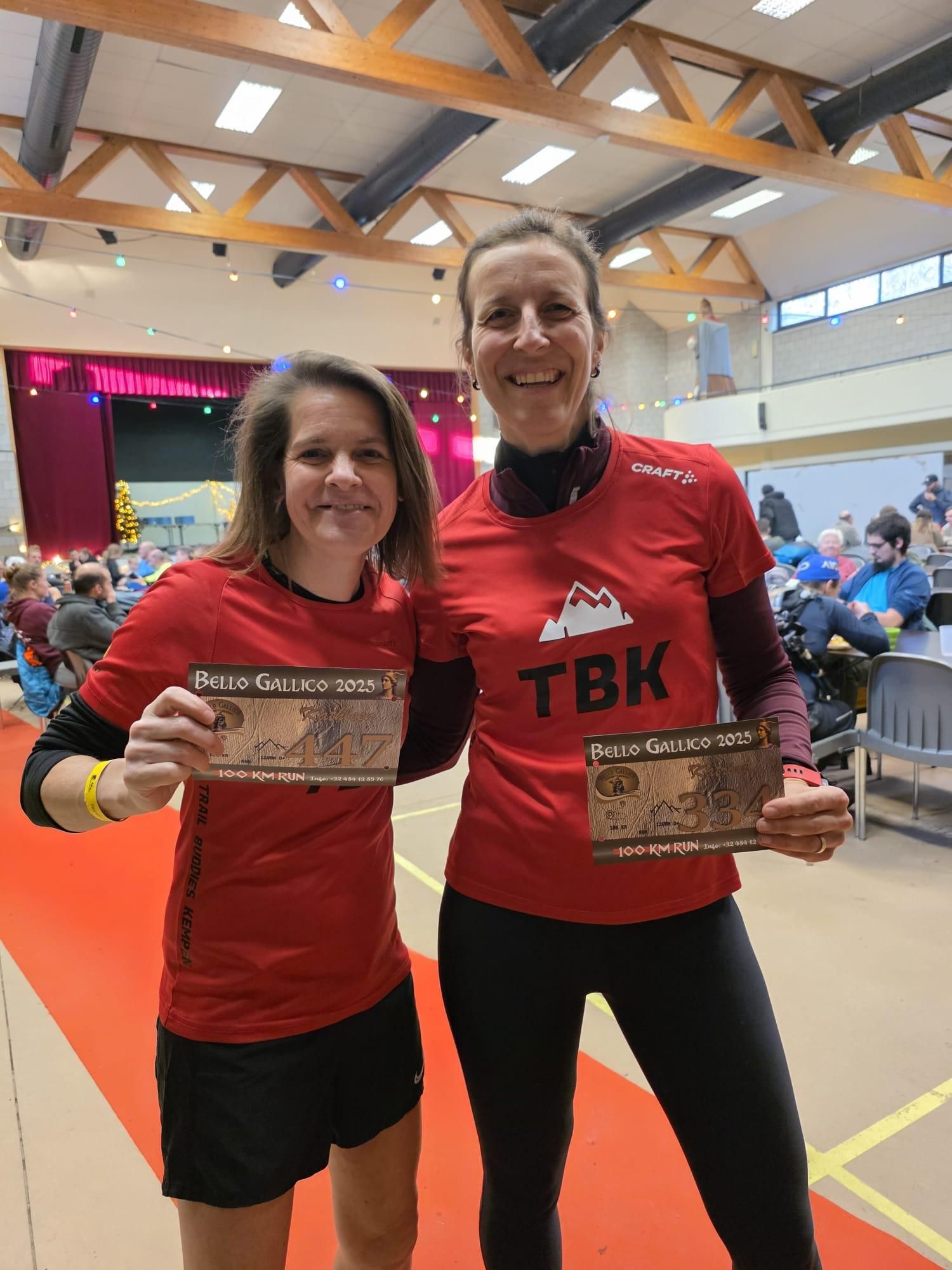 Ook op de 100 kilometer liet TBK zich van zijn beste kant zien en liep alles op wieltjes. Isabel liep een ijzersterke wedstrijd en nam al vroeg het heft in handen. Ze hield haar tempo strak, bleef koel in de moeilijke stukken en liet zien wat ervaring en zelfvertrouwen kunnen doen op dit parcours. In een kleine 12 uur kwam ze als eerste over de streep, een prestatie die op geen enkel moment gestolen leek. Ook Jonas Sebreghts kende een topdag. Met een stevige en constante race finishte hij als 10de algemeen in amper 11 uur, een tijd die getuigt van durf, inhoud en koersinzicht. Geen gekke pieken, geen inzinkingen, gewoon blijven gaan. Daarnaast bewezen Jonas Bollen, Kathleen en Katrien dat de 100 km allesbehalve een “kortere afstand” is. Elk van hen vocht zich kilometer na kilometer door het parcours, met vermoeide benen maar een helder hoofd. Slim omgaan met tempo, voeding en de kleine tegenslagen onderweg maakte het verschil, en dat resulteerde in sterke, verdiende finishes. De 100 km werd zo geen bijrol, maar een volwaardige TBK-show: strak gelopen, met karakter, en met dezelfde vastberadenheid die ook op de 200 km nodig is. Ook hier werd geknokt, genoten en afgewerkt.