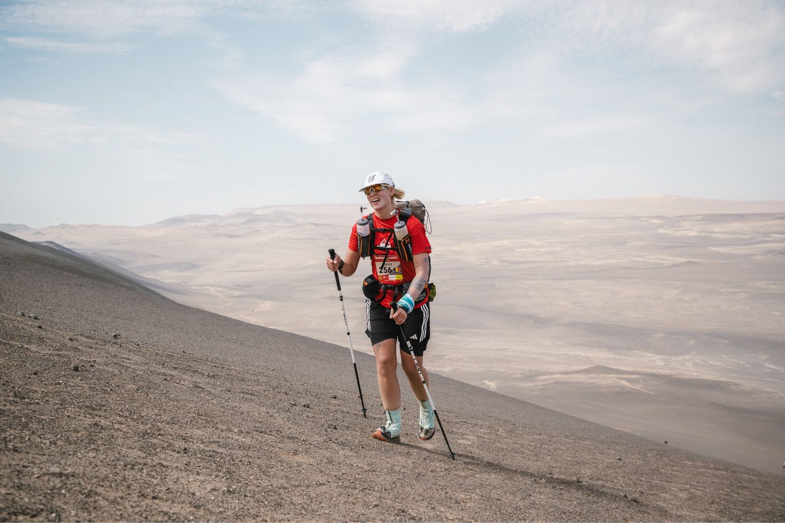 De MDS Peru wordt gelopen in drie etappes, samen goed voor 80 kilometer en zo’n 2000 hoogtemeters, volledig in zelfvoorziening. Dat betekent: alles wat je nodig hebt draag je zelf mee op de rug, dag na dag. Overdag brandt de zon ongenadig, ’s nachts koelt het stevig af terwijl je slaapt in een tentje, en het lichaam krijgt amper tijd om te herstellen tussen de etappes. Joyce had zich stevig voorbereid, maar voelde al snel dat de benen niet helemaal wilden meewerken zoals gehoopt. Toch bleef ze doorgaan, stap na stap, met die typische koppigheid van haar die we bij TBK maar al te goed kennen.